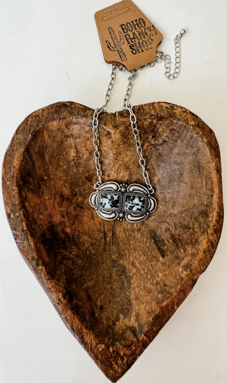 Semi Stone Concho Squash Blossom Pendant Necklace - Small