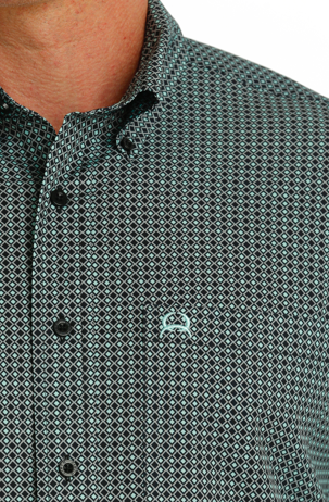 Men's Stretch Geometric Print Button-Down Western Shirt - Blue/Navy/Black