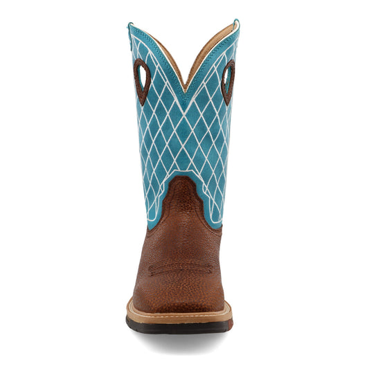 Men's 12" Steel Toe Lite Western Work Boot - Brown Distressed/Turquoise