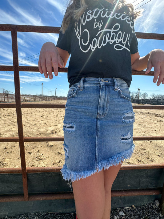 Lucy High Rise Fringed Hem Mini Skirt (Plus Size)