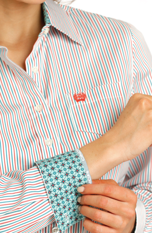 Cinch Ladies Long Sleeve Teal & Red Button Up