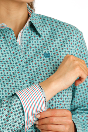 Ladies Cinch Teal & Printed Arenaflex Button Up