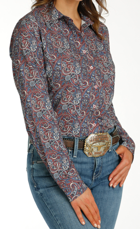 Cinch Women's ArenaFlex Burgundy Paisley Button Up