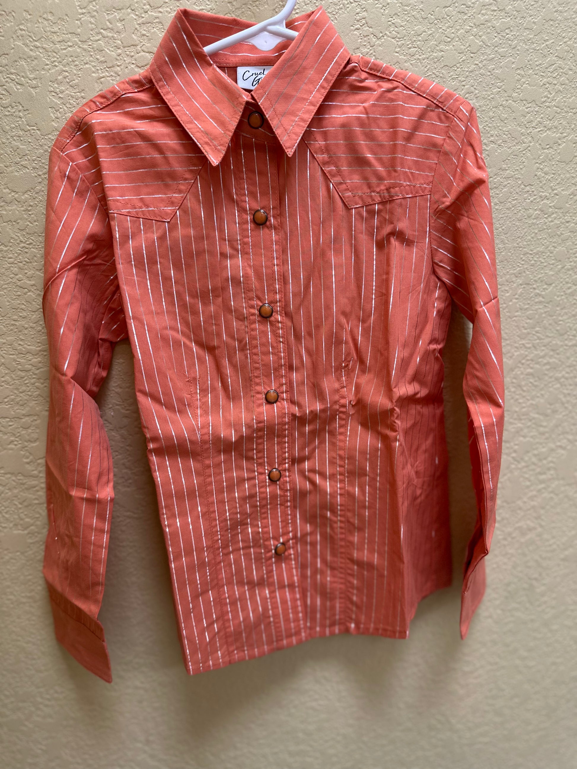This playful girls' long sleeve top shines in a vibrant metallic coral color, adding a fun pop of sparkle to her wardrobe. Soft and comfortable, it’s perfect for everyday wear or special moments when she wants to stand out with a touch of shimmer.