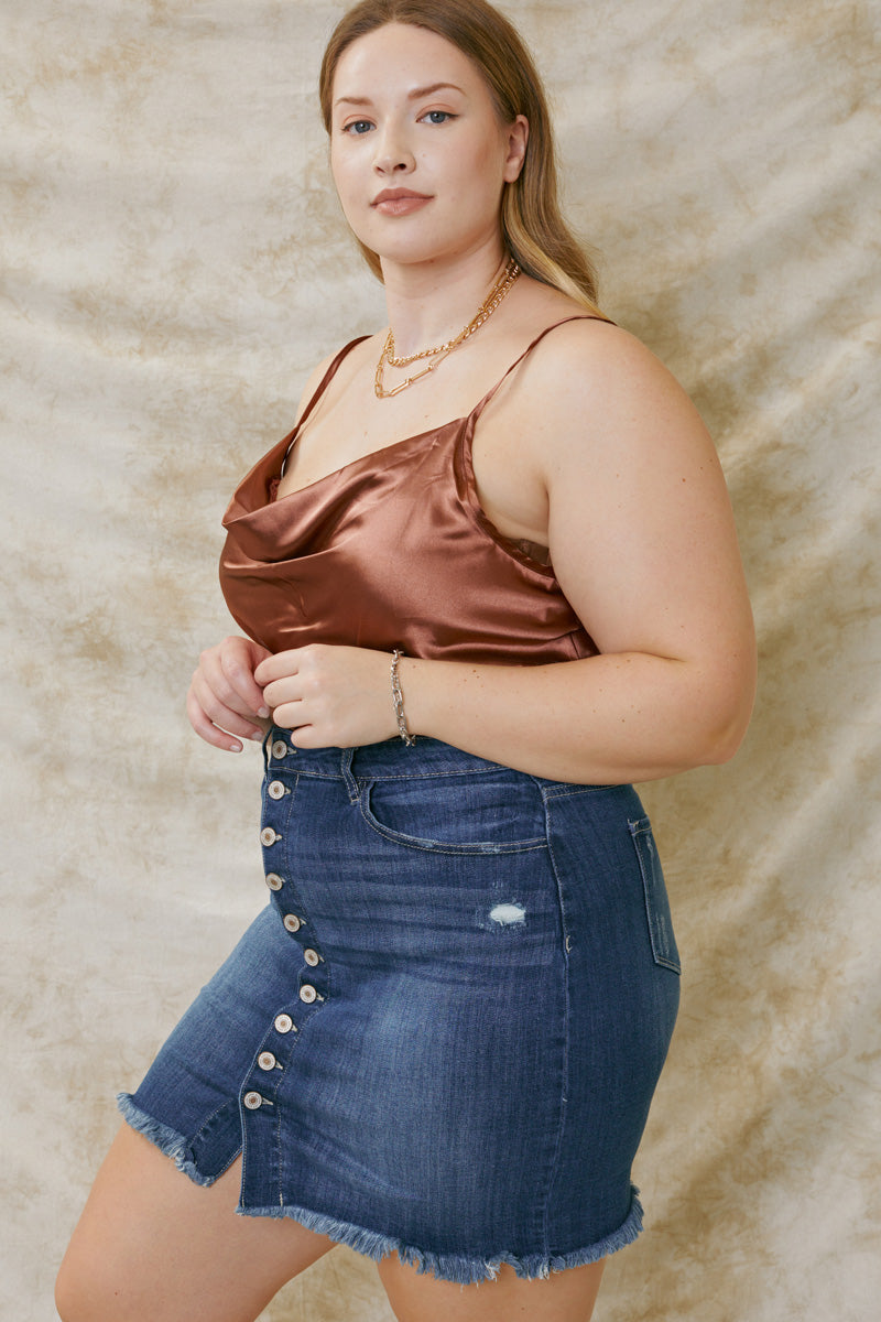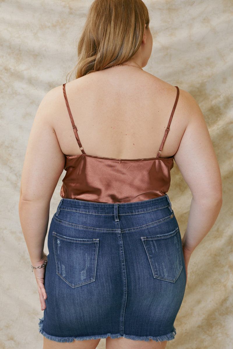Lucy High Rise Fringed Hem Mini Skirt (Plus Size)
