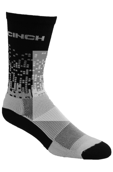 This pair of black and white crew socks were made right here in the USA. CINCH socks are equipped with arch support, targeted cushioning, cooling mesh and moisture wicking technology.