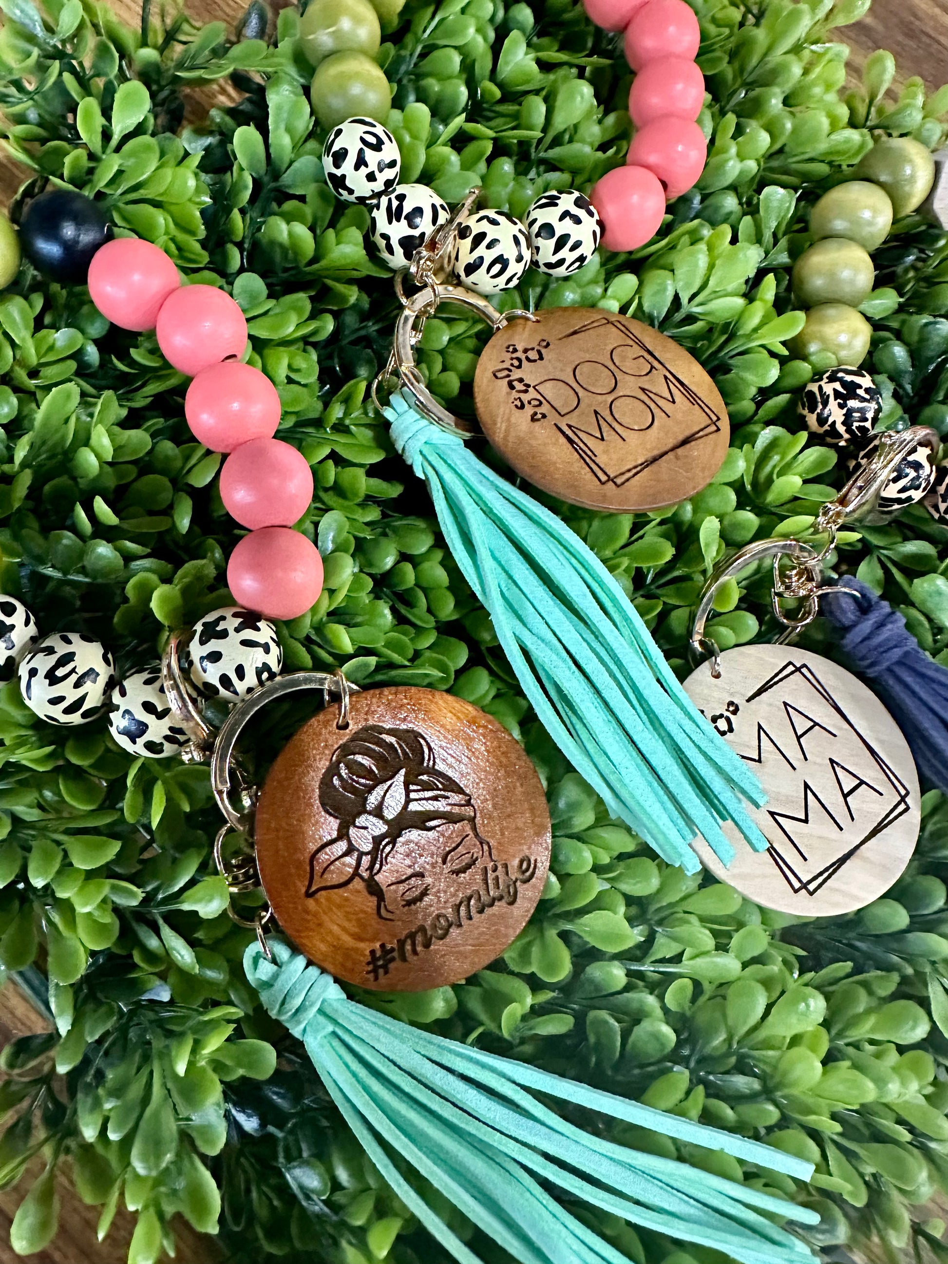Pink/Green Cow Print Wristlet