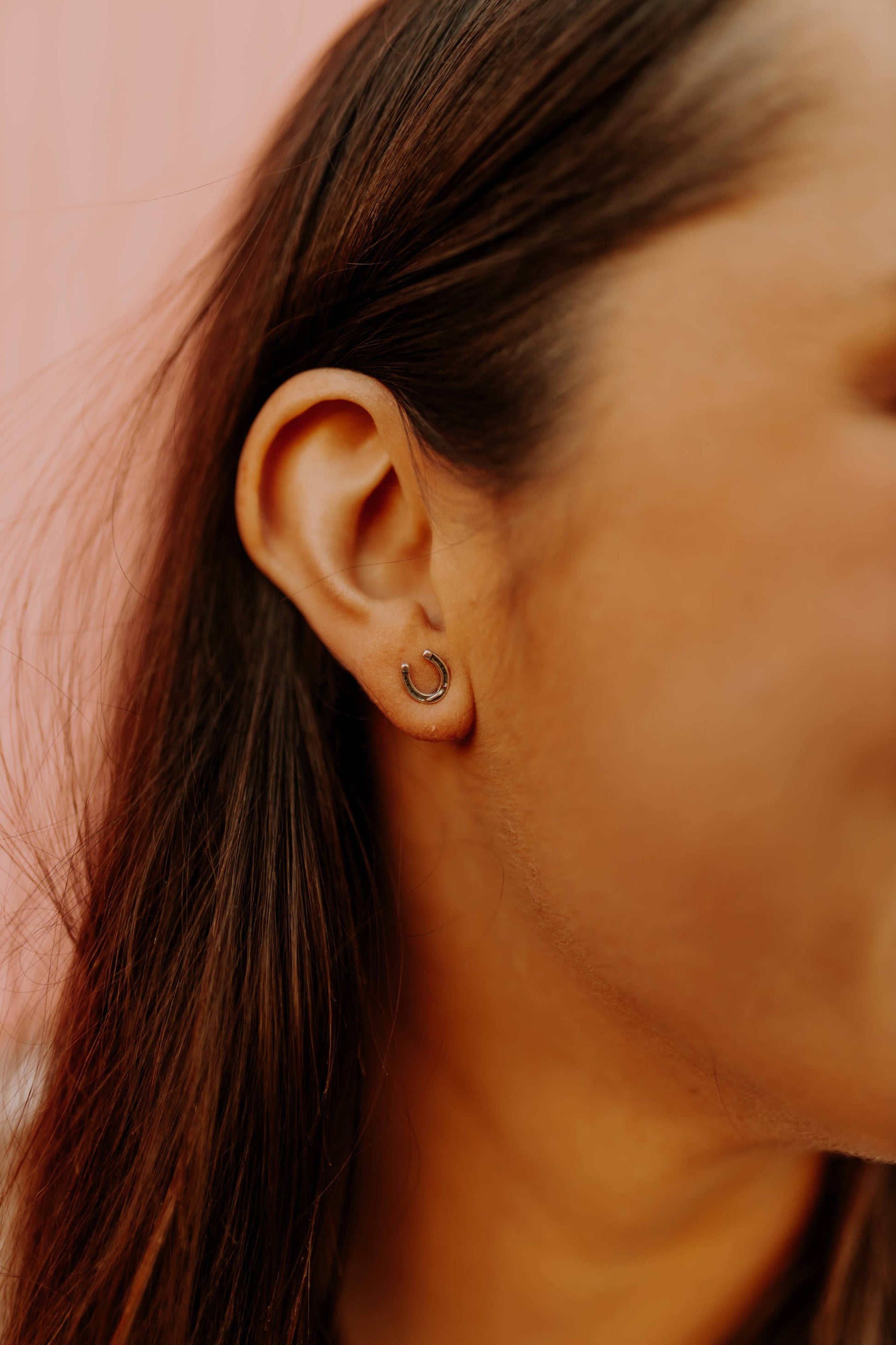 The perfect rodeo earrings are here! The Sterling Silver Horseshoe Stud Earrings are a simple sterling silver shaped horseshoe stud that every cowgirl will love. Pair with our Silver Western Horseshoe Ring to complete your look!