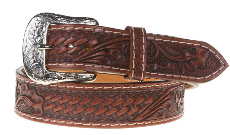 Twisted X Belt Leather Chestnut Basketweave Floral with Tooling